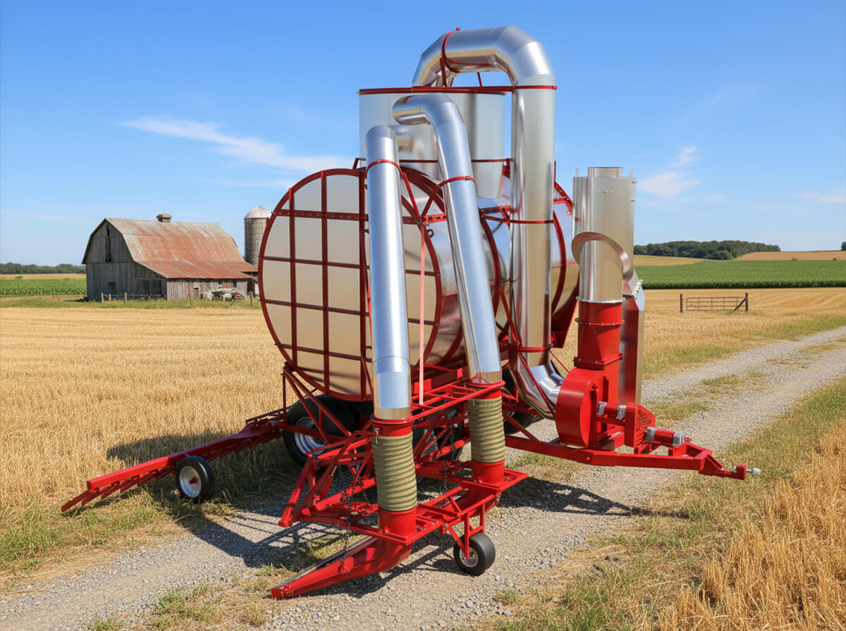 Устанавливается в воздушный тракт торфосборщика. Улавливает крупную торфяную пыль до того, как она попадает в фильтры или окружающую среду — снижает износ оборудования и соответствует экологическим требованиям. Требует дополнительно 7 кВт мощности трактора.